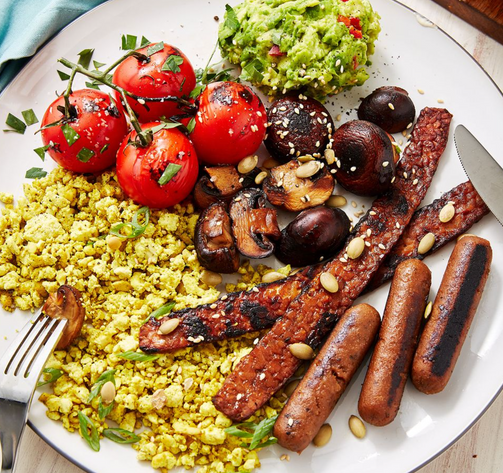 Vegan sausage, avocado, mushrooms,baked beans, roasted tomatoes and toast of your choice